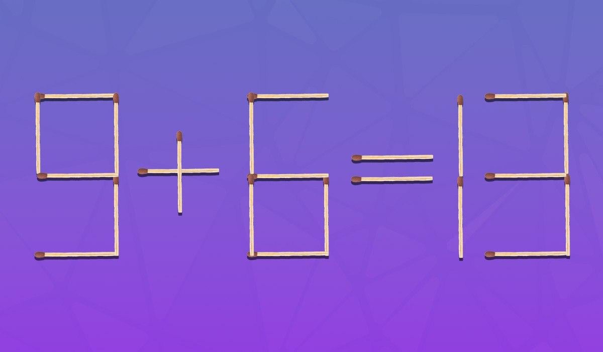 Nižšie uvedená hádanka je určená pre ľudí s výnimočnými schopnosťami sústredenia. Na obrázku uvidíte rovnosť „9+6=13“, ktorá je z matematického hľadiska nesprávna. Musíte ju opraviť.