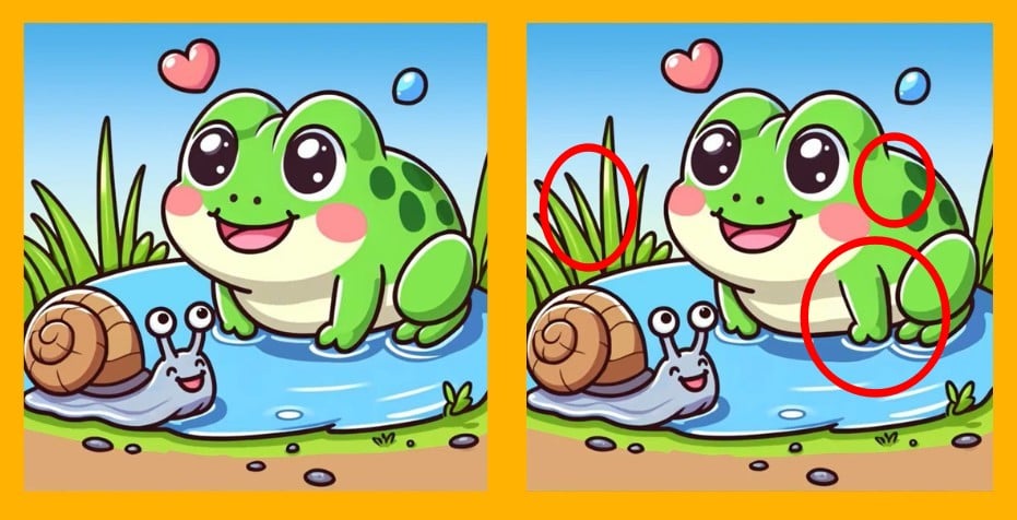 Tak čo, ste pripravení na ďalšiu výzvu? Pozrite sa pozorne na dva obrázky žaby a slimáka. Na prvý pohľad vyzerajú rovnako, ale sú medzi nimi tri malé rozdiely. Myslíte si, že ich všetky nájdete za 17 sekúnd? Vyskúšajte to a otestujte svoju ostrosť zraku!
