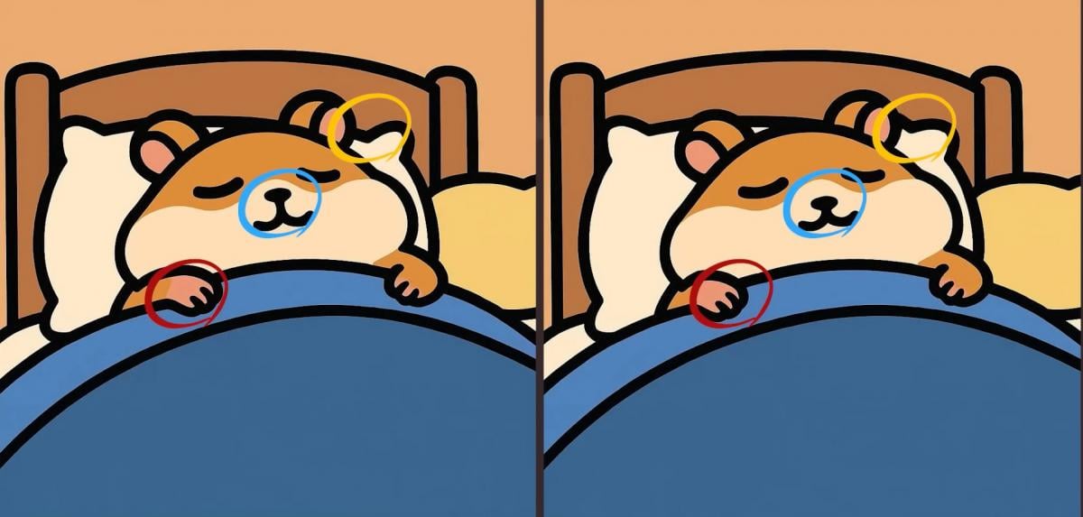Tak čo, ste pripravení na ďalšiu výzvu? Pozrite sa pozorne na dva obrázky spiaceho škrečka. Na prvý pohľad možno vyzerajú rovnako, ale sú medzi nimi tri malé rozdiely. Myslíte si, že ich všetky nájdete za 29 sekúnd? Vyskúšajte to a otestujte svoju ostrosť zraku!