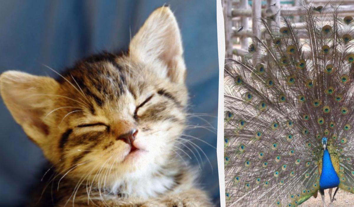 Mačiatko bolo za pávím chvostom / koláž z fotografie Moje
