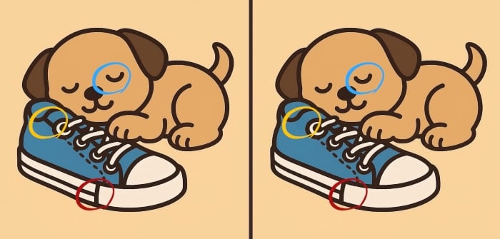 Tak čo, ste pripravení na ďalšiu výzvu? Pozrite sa pozorne na dva obrázky šteniatka spiaceho na topánke. Na prvý pohľad možno vyzerajú rovnako, ale sú tu tri malé rozdiely. Myslíte si, že ich všetky nájdete za 51 sekúnd? Skúste to a otestujte svoju ostrosť zraku!
