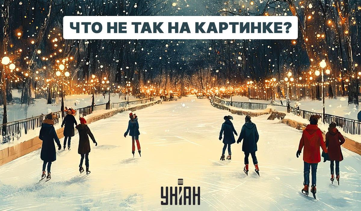 Pred vami je obrázok, na ktorom je zobrazené klzisko s návštevníkmi. Krásna krajina v zimnej scenérii sa na prvý pohľad zdá byť dokonalá. V skutočnosti sa v nej však skrýva hrubá chyba.
